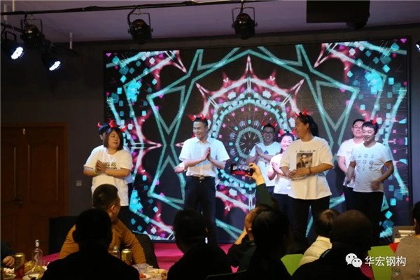 結(jié)束語:公司各位領(lǐng)導(dǎo)與各標(biāo)兵父母,十大功勛父母,公司友好合作商及全體華宏人齊聚一堂觀看“襄盛舉 繪藍(lán)圖 新征程”為主題的2021年度聯(lián)歡晚會,整場晚會在一片輕松、熱鬧、融洽、歡樂的氛圍中進(jìn)行。我們將手挽手、肩并肩迎接華宏更加燦爛輝煌的明天!
